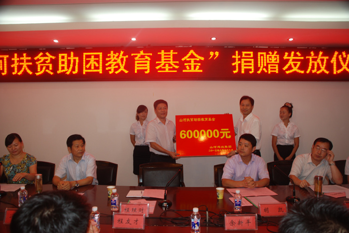 社會成就山河集團(tuán),山河集團(tuán)不忘社會。2006年8月,山河集團(tuán)與黃岡市總工會共同發(fā)起設(shè)立了“黃岡市總工會山河扶貧助學(xué)專項(xiàng)資金”。“山河扶貧助學(xué)專項(xiàng)資金”的設(shè)立,旨在建立一個長效的助學(xué)機(jī)制,全力打造“愛心助學(xué)”品牌。8年來,山河集團(tuán)從董事長到基層員工,個個慷慨解囊,人人踴躍捐資,先后幫助2000多名貧困初中生順利進(jìn)入高中完成學(xué)業(yè)、貧困高中生邁進(jìn)大學(xué)校園實(shí)現(xiàn)人生夢想。