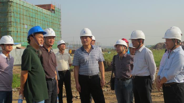 建委副主任夏平(中)在工地現(xiàn)場指示工作