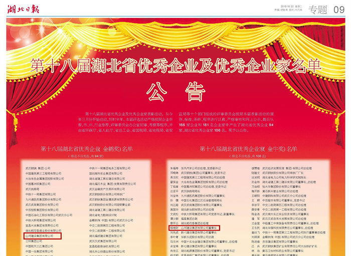 山河集團位列湖北百強企業(yè)25位并榮獲“金鶴獎”