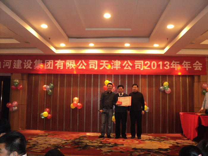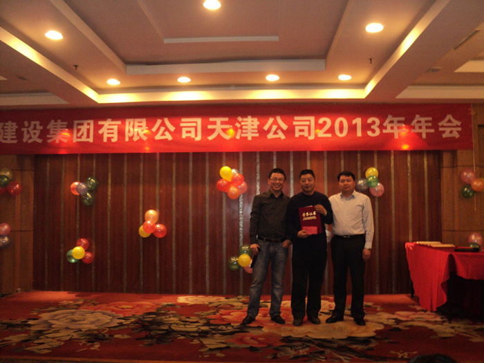 接下來是對(duì)2013年成績(jī)優(yōu)秀的項(xiàng)目部進(jìn)行表彰,他們是天津經(jīng)綸科技項(xiàng)目部,天津軍交學(xué)院項(xiàng)目部,河北長(zhǎng)城家園項(xiàng)目部。分別由天津公司總經(jīng)理程震洪,集團(tuán)公司副總兼天津公司總工史紹剛,天津公司黨委書記付志遠(yuǎn)對(duì)以上項(xiàng)目部進(jìn)行頒獎(jiǎng)。
