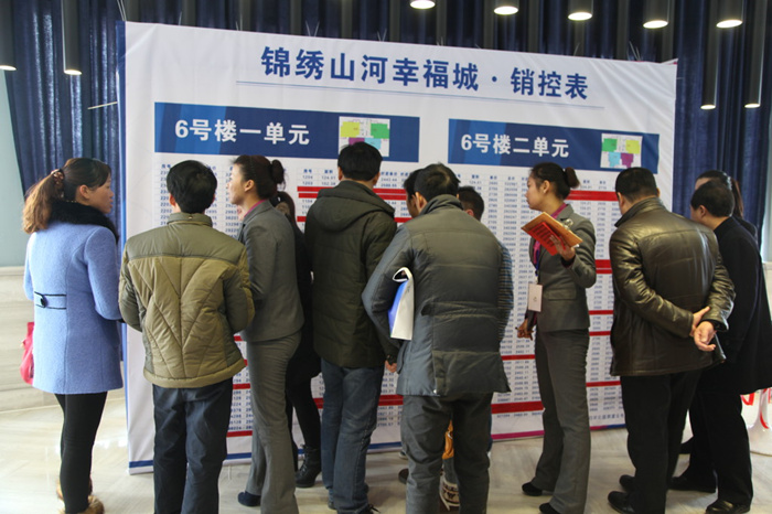 隨著錦繡山河•幸福城正式進入開盤銷售狀態(tài)時,營銷中心門前排起了長龍,購房者心情忐忑起來,不時看著手中的購房號碼,滿懷期待。進入營銷中心后,客戶們更是爭相恐后選房、交款,現(xiàn)場氛圍異?;鸨?。