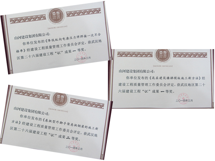2013年,集團及區(qū)域公司技術(shù)部門和項目部的相關(guān)技術(shù)管理人員,針對施工過程中存在的質(zhì)量問題,圍繞健全制度、提高質(zhì)量、創(chuàng)造效益為核心,積極開展QC活動,上述獲獎的QC成果就是其中的代表。本次QC成果發(fā)布,漢陽人信匯項目的《高層建筑樓梯模板施工新方法》、招商雍華府項目的《降低縱向電渣壓力焊焊接一次不合格率》獲得市一等獎,奧山世紀(jì)城項目的《懸挑型外腳手架懸挑鋼梁的施工新方法》獲得市二等獎。取得這樣的成績,得益于集團公司及區(qū)域公司領(lǐng)導(dǎo)的支持和項目部各位同仁的共同努力。
