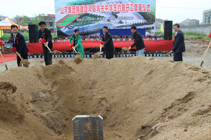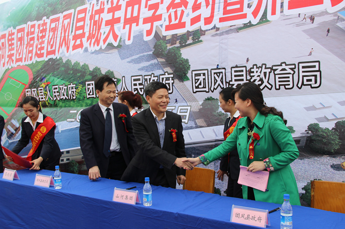 4月15日上午,山河集團捐建團風縣城關中學簽約暨奠基開工儀式舉行,團風縣副縣長黃菊花代表縣人民政府與山河集團董事長程理財簽訂了捐建協(xié)議書。