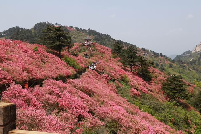午后驕陽似火,大家仍然興致高昂,來到聞名遠(yuǎn)播的杜鵑花海,看到滿山滿片、極其壯觀的杜鵑花海,平時(shí)工作的疲憊一掃而盡,大家紛紛在花中留影。據(jù)悉這里是華中地區(qū)規(guī)模最大、年代最古老的古杜鵑群落,其總面積達(dá)10萬多畝,生長周期上百萬年,保存最完好,連片面積達(dá)1萬多畝,屬原生態(tài)古杜鵑群落。