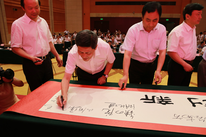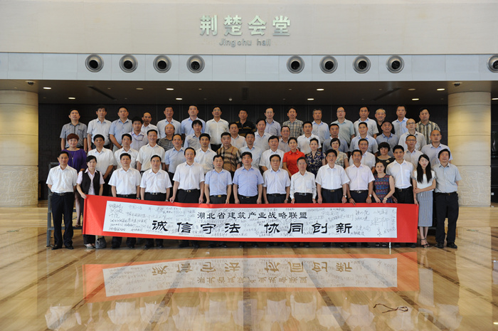 “維護建筑市場秩序,推行公平競爭,重合同,守信用,不做虛假宣傳,不逃避責任?!睍希珖舜蟠?、山河集團董事長程理財代表省建筑產(chǎn)業(yè)聯(lián)盟企業(yè)作出鄭重承諾。隨后,產(chǎn)業(yè)聯(lián)盟成員單位現(xiàn)場簽名,共同發(fā)起“誠信守法 協(xié)同創(chuàng)新”倡議。