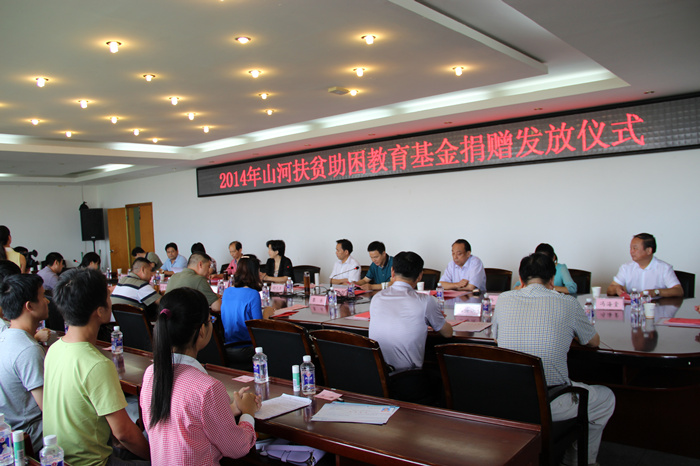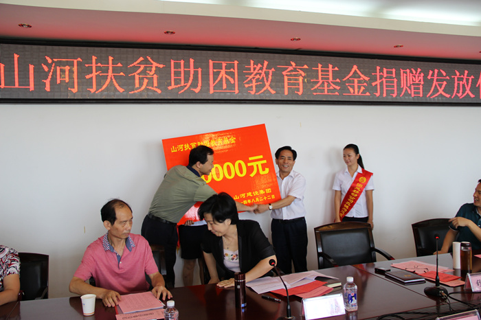 8月22日上午,2014年“山河集團扶貧助困教育基金”捐贈發(fā)放儀式在團風縣政府七樓會議室舉行,集團公司黨委書記舒先厚及部分項目經(jīng)理代表等參加活動。團風縣“四大家”領(lǐng)導(dǎo)、縣教育局領(lǐng)導(dǎo)、受助學(xué)生代表出席儀式。