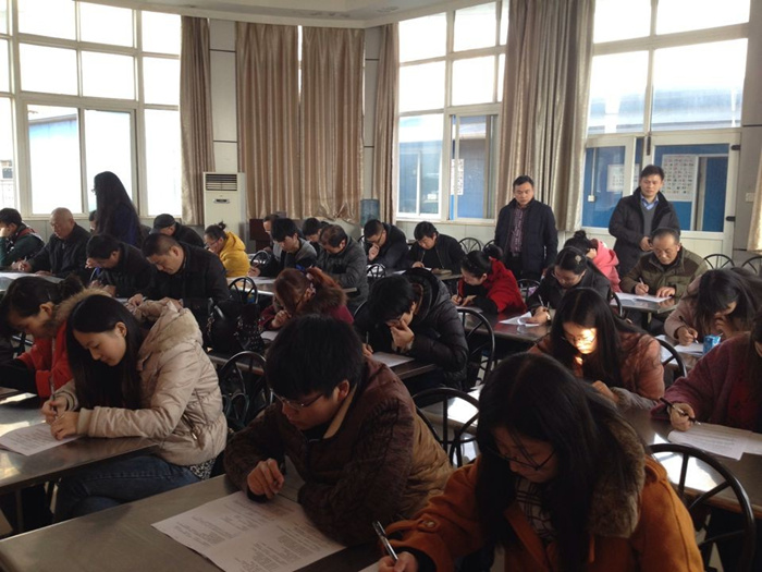 考試時(shí)間定于2014年12月13日下午14:00-16:30,考慮到地域分布因素,集團(tuán)總部設(shè)置了四、五樓兩個考場,主要為總部、湖北公司及所轄項(xiàng)目部會計(jì)人員考試提供場地,其他區(qū)域公司、地產(chǎn)子公司、專業(yè)子公司也在本單位會議室安排了考場??荚嚥扇¢]卷形式,并通過現(xiàn)場監(jiān)考人員備案、遠(yuǎn)程視頻監(jiān)考、考卷A、B分類、考前發(fā)放試卷至監(jiān)考人等方式,確保了本次活動的公開、公平與真實(shí)。