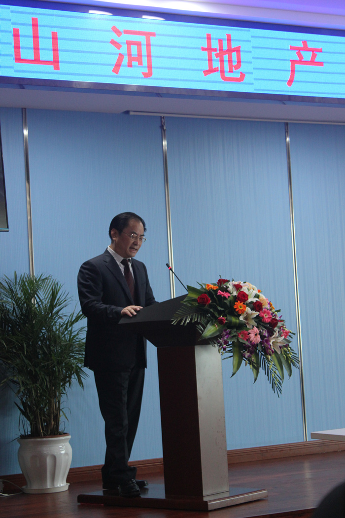 最后,集團(tuán)董事長程理財(cái)作重要講話。他指出,進(jìn)入2015年,山河集團(tuán)喜事連連,才召開了山河集團(tuán)湖北區(qū)域公司動員大會,又迎來了山河地產(chǎn)成立的盛事。他介紹了山河地產(chǎn)業(yè)務(wù)發(fā)展的過程,強(qiáng)調(diào)山河地產(chǎn)的成立,既是企業(yè)發(fā)展的需要,更是暴利時(shí)代結(jié)束后市場走向?qū)I(yè)化、知識化的必由之路。程理財(cái)董事長表示,山河地產(chǎn)的成立不僅會對山河集團(tuán)的持續(xù)健康發(fā)展起到核心的作用,更會成為湖北乃至全國地產(chǎn)界一個(gè)知名品牌。他期望地產(chǎn)集團(tuán)基于精干高效的原則搭建現(xiàn)代企業(yè)管理體系,更充分給予“四個(gè)獨(dú)立”的授權(quán),建議地產(chǎn)集團(tuán)盤活存量、重視銷售、找準(zhǔn)定位、拓展市場,對標(biāo)一流企業(yè),打造核心競爭力。
