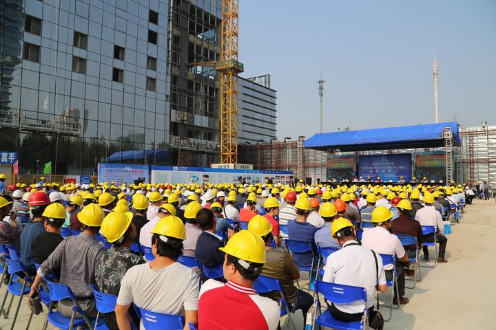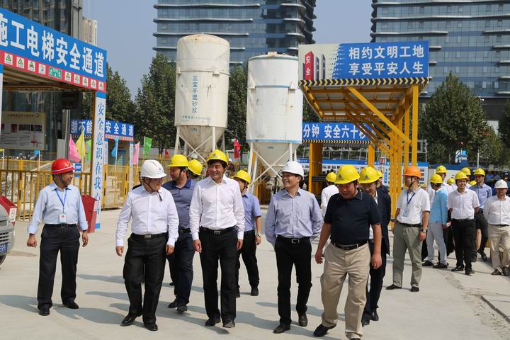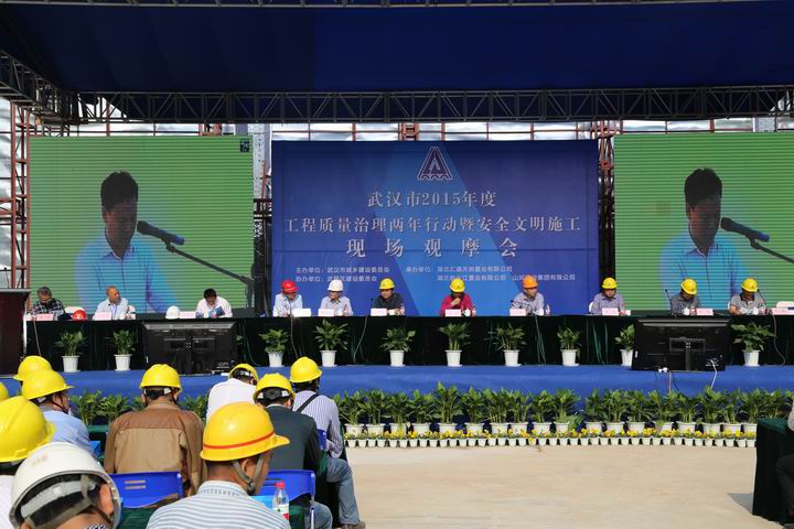 2015年10月22日上午,武漢市2015年度工程質(zhì)量治理兩年行動暨安全文明施工現(xiàn)場觀摩會在山河集團湖北公司匯通新長江中心項目召開。湖北省質(zhì)安總站副站長周偉,武漢市稽查站總工程師曹立新、質(zhì)檢站處長李華、安全站副站長熊威,武昌區(qū)文明辦主任肖永高、安監(jiān)局局長何學(xué)軍、建委書記周旗福、建委副局長王水泉、建委副主任山峰,湖北新長江置業(yè)有限公司董事長陳學(xué)明,北京縱橫監(jiān)理有限公司副總經(jīng)理張忠,山河集團董事長程理財、副總經(jīng)理程秋明、湖北公司常務(wù)副總經(jīng)理柯為正、副總經(jīng)理羅定軍等領(lǐng)導(dǎo)參加了會議。武漢市建管辦楊凡主任主持會議。