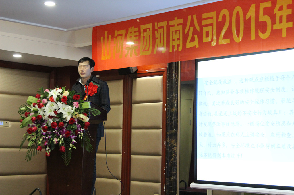 2016年1月16日上午,河南公司2015工作會議暨表彰大會在鄭州格林東方酒店隆重舉行。河南公司全體員工、項(xiàng)目經(jīng)理、項(xiàng)目部主要管理人員、表彰人員等共計(jì)70余人參加了此次會議。山河集團(tuán)常務(wù)副總兼湖北公司總經(jīng)理林中茂、河南公司總經(jīng)理馬文敏等領(lǐng)導(dǎo)參加了本次會議。大會由河南公司副總經(jīng)理余亮主持。