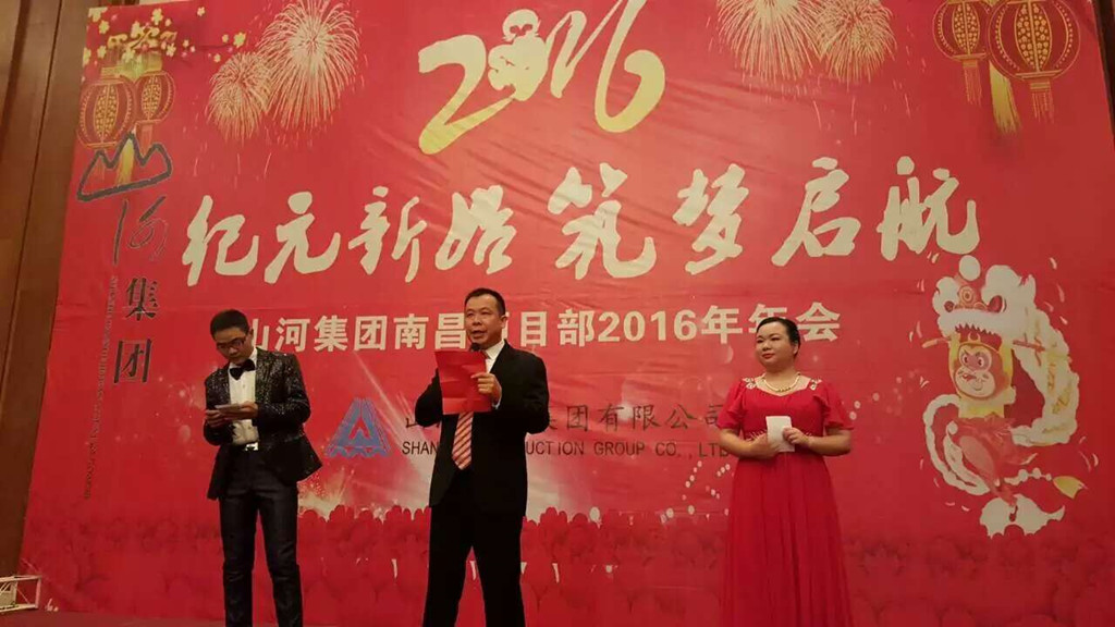 2016年1月16日,格蘭云天大酒店現(xiàn)場彩燈閃爍,座無虛席。山河集團(tuán)南昌項(xiàng)目部在這里隆重舉行了以“紀(jì)元新始 筑夢啟航”為主題的年會。湖北公司副總經(jīng)理左根生、項(xiàng)目部全體員工及嘉賓共計240余人齊聚一堂,共饗盛典。