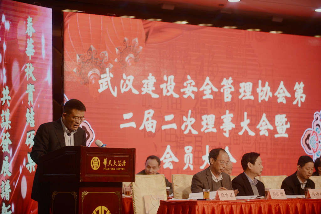 武漢市建筑安全協(xié)會副會長、山河集團(tuán)常務(wù)副總經(jīng)理林中茂主持會議。武漢市建委副主任夏平,市民政局處長張福先,市建委質(zhì)安處處長謝衛(wèi)華,市安全監(jiān)管站站長熊付剛、書記王偉震、副站長周捍東,市安全協(xié)會應(yīng)志剛等領(lǐng)導(dǎo)及在漢建筑施工單位參會代表共計(jì)400余人參加此次會議。