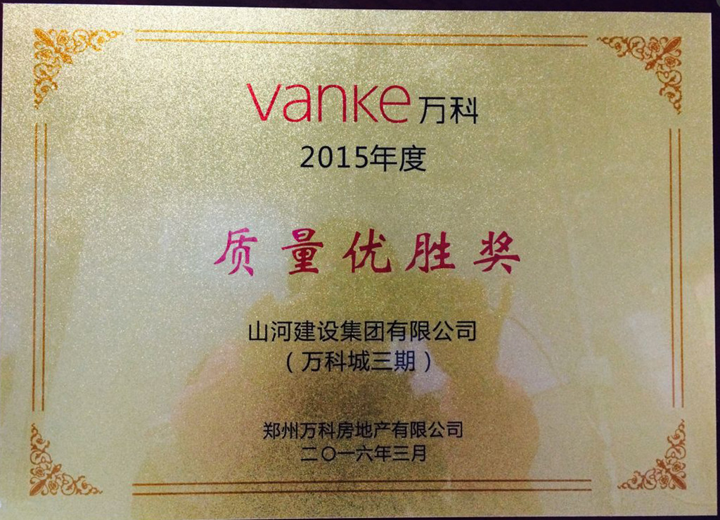 3月10日,鄭州萬(wàn)科房地產(chǎn)有限公司舉辦了“2016合作方目標(biāo)與行動(dòng)溝通會(huì)暨頒獎(jiǎng)典禮”,與鄭州萬(wàn)科合作的各家單位均有代表參加會(huì)議。山河集團(tuán)憑借過(guò)硬的質(zhì)量品質(zhì),承建的萬(wàn)科城三期項(xiàng)目榮獲鄭州萬(wàn)科頒發(fā)的“質(zhì)量?jī)?yōu)勝獎(jiǎng)”。