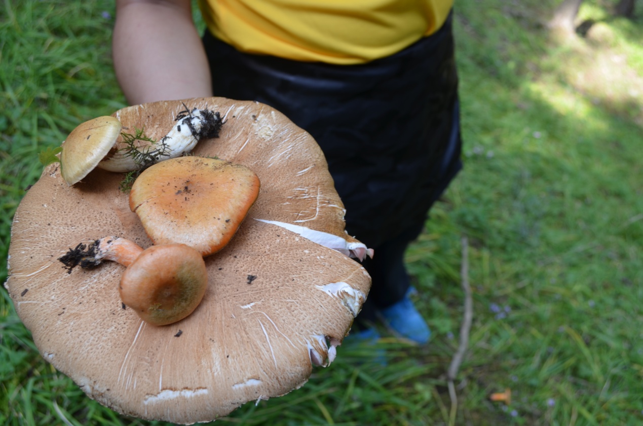 看,我們的員工,在山間采了一顆這么大的蘑菇,這是收獲的號角,這是希望的預(yù)言!