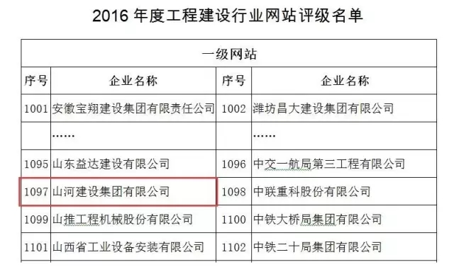 近日,由中國施工企業(yè)管理協(xié)會(huì)開展2016年度工程建設(shè)行業(yè)網(wǎng)站評(píng)級(jí)活動(dòng)中,山河集團(tuán)官網(wǎng)以完善的功能和良好的品牌體驗(yàn)被評(píng)為“一級(jí)網(wǎng)站”榮譽(yù)稱號(hào)。