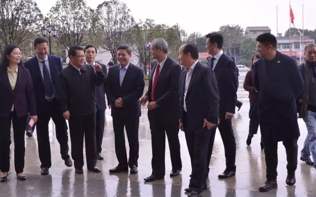 湖北省副省長任振鶴(左三)與程理財(cái)董事長(左五)親切交流