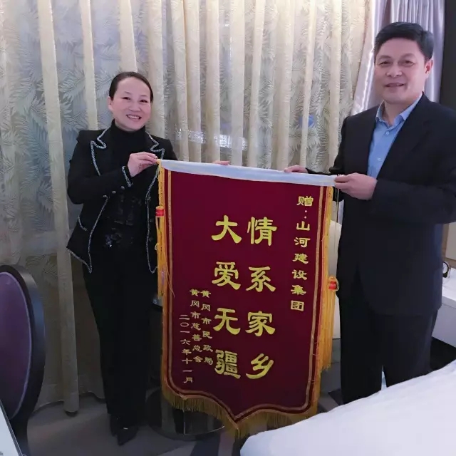 會(huì)后,黃岡市民政局局長石巧珍向程理財(cái)轉(zhuǎn)交市委市政府的感謝信,并代表民政局及市慈善總會(huì)向山河集團(tuán)贈(zèng)送榮譽(yù)錦旗一面,感謝山河集團(tuán)在今年黃岡遭受嚴(yán)重洪澇災(zāi)害時(shí)作出的無私奉獻(xiàn)。